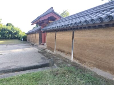 外郭東門、築地塀、水洗厠舎、碑、説明板