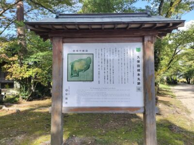 城郭の構造は、本丸・二の丸・三の丸からなり、さらにその外側を多重の堀と土塁が取り囲む複郭式構造を採用していました。石垣はほとんど用いられず、代わりに版築による土塁で防御線を築くのが特徴です。敷地の東には藩主の御殿があり、藩政を行う政庁や藩士の屋敷群が整然と配置されていました。現在もその名残として「表門跡」「御物頭御番所跡」などの遺構が確認され、当時の城の規模の大きさがうかがえます。