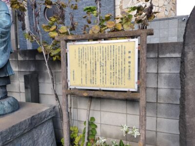 境内には、寛文5年(1665年)の庚申塔が残されており、川崎市の重要郷土資料に指定されている。庚申塔には阿弥陀如来を主尊とする彫刻が施され、三猿(見ざる・聞かざる・言わざる)の像も併設されており、庶民信仰の歴史を今に伝える。寺は洪水の影響を受けた歴史もあり、当初の場所から現在地に移転して今日に至る。