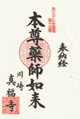 川崎市川崎区堀之内町にある「瑠璃山 金剛院 真福寺」は、真言宗智山派に属する歴史ある寺院で、地域の信仰の拠点として長く親しまれてきた。山号は瑠璃山、院号は金剛院、本尊は薬師如来で、病気平癒や健康祈願の信仰が厚い。創建年代は明確ではないが、至徳元年(1384年)に法印覚眼が再興したとされ、元禄12年(1699年)には住職栄誉による中興が行われた記録がある。古くから川崎宿や周辺地域の人々の精神的支えとして機能してきた古刹である。